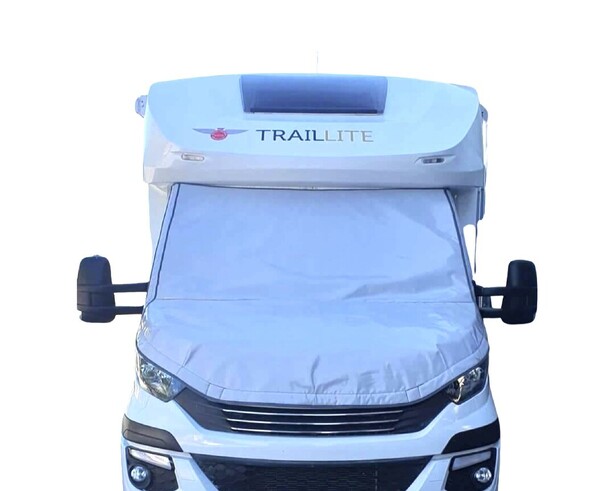 The most popular and practical Thermal Cover is made from three layers of material. The outside surfaces are a premium US made, marine grade, upholstery fabric. The inner is a foil-backed bubble wrap designed specifically for thermal insulation. It is this middle layer which creates the thermal break, stopping the warm air inside the motorhome condensing on the cold windscreen.