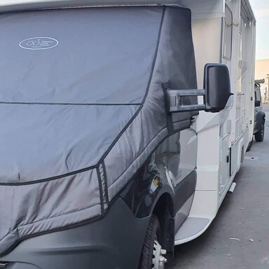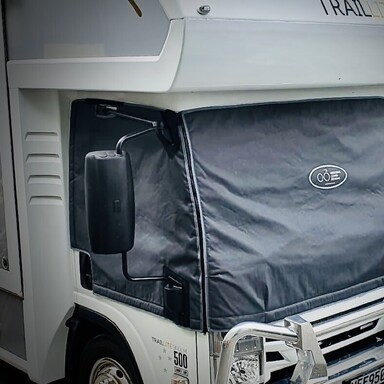The most popular and practical Thermal Cover is made from three layers of material. The outside surfaces are a premium US made, marine grade, upholstery fabric. The inner is a foil-backed bubble wrap designed specifically for thermal insulation. It is this middle layer which creates the thermal break, stopping the warm air inside the motorhome condensing on the cold windscreen.
