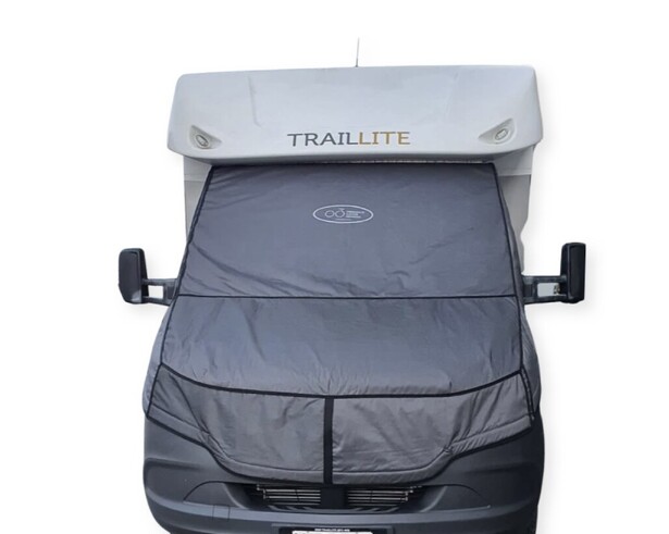 The most popular and practical Thermal Cover is made from three layers of material. The outside surfaces are a premium US made, marine grade, upholstery fabric. The inner is a foil-backed bubble wrap designed specifically for thermal insulation. It is this middle layer which creates the thermal break, stopping the warm air inside the motorhome condensing on the cold windscreen.